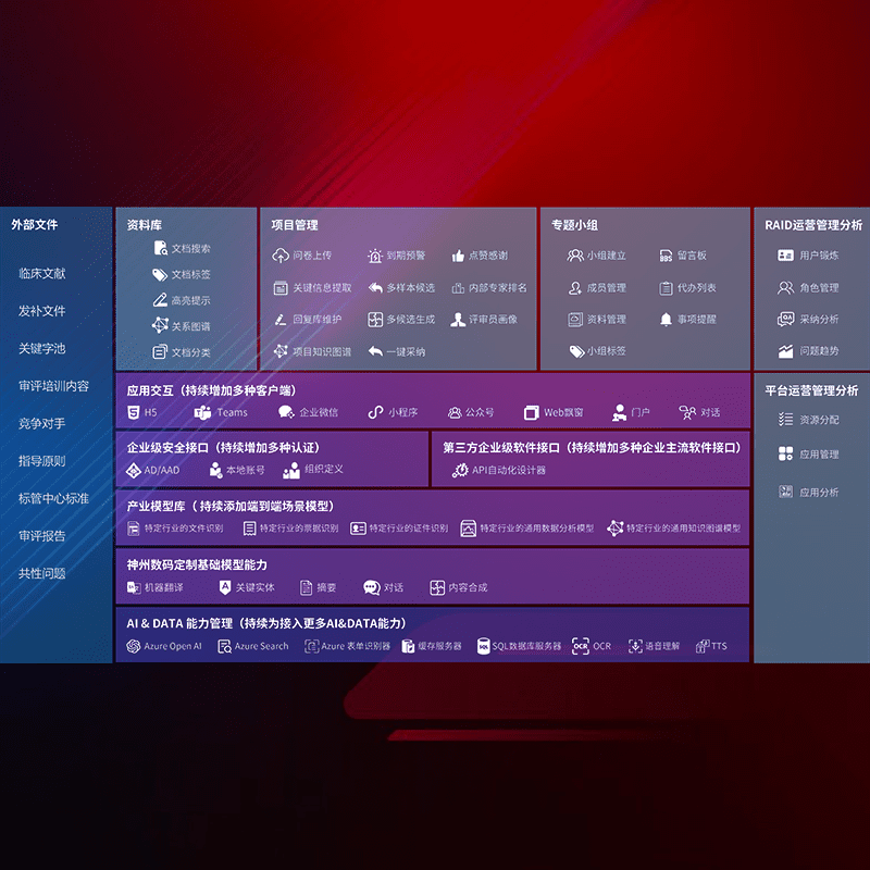 医疗器械产品上市前,,,,要熟悉严格与繁复评审标准,,,整理分析监管机构指导文件中的海量信息。。。企业急需一个智能化解决方案,,,,提升知识管理效率,,,提高评审通过率,,,,以提升其市场竞争力。。。